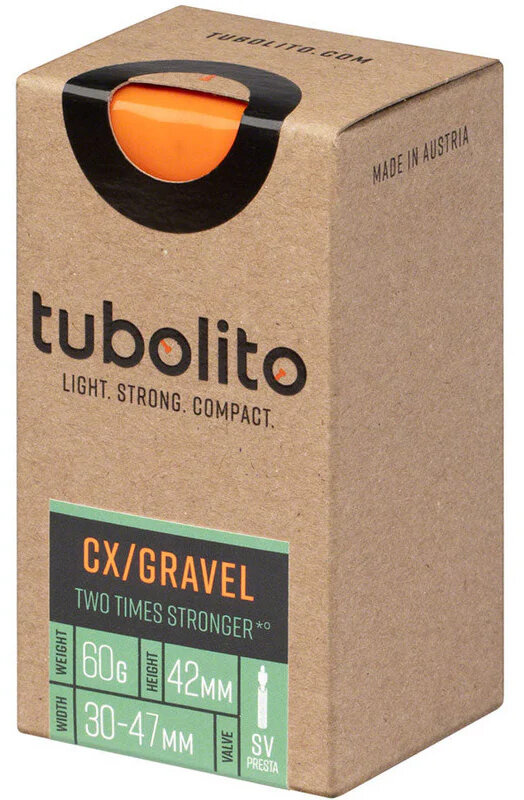 The Tubo-CX/Gravel is twice as robust as standard tubes. And at the same time, due to its low weight of 60 grams, it guarantees twinkle toed rides. The 50% smaller packed size makes it also a spare tube which fits in every pocket.